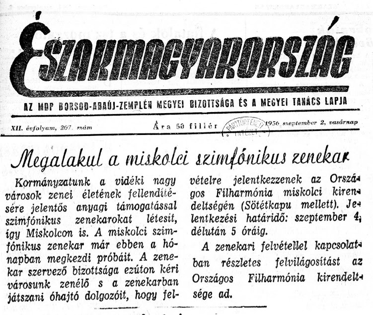 „Kormányzatunk a vidéki nagy városok zenei életének fellendítésére jelentős anyagi támogatással szimfónikus zenekarokat létesít, így Miskolcon is.