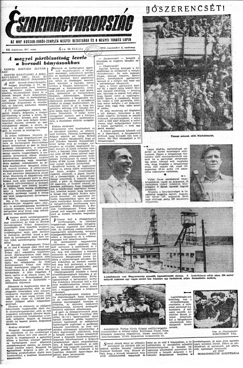„Pártunk, kormányunk, dolgozó népünk azt várja Borsod megye minden bányászától, hogy az első félévhez hasonló munkalendülettel tartsa meg az országos versenyben elfoglalt megtisztelő helyet, érjenek el újabb termelési sikereket…”