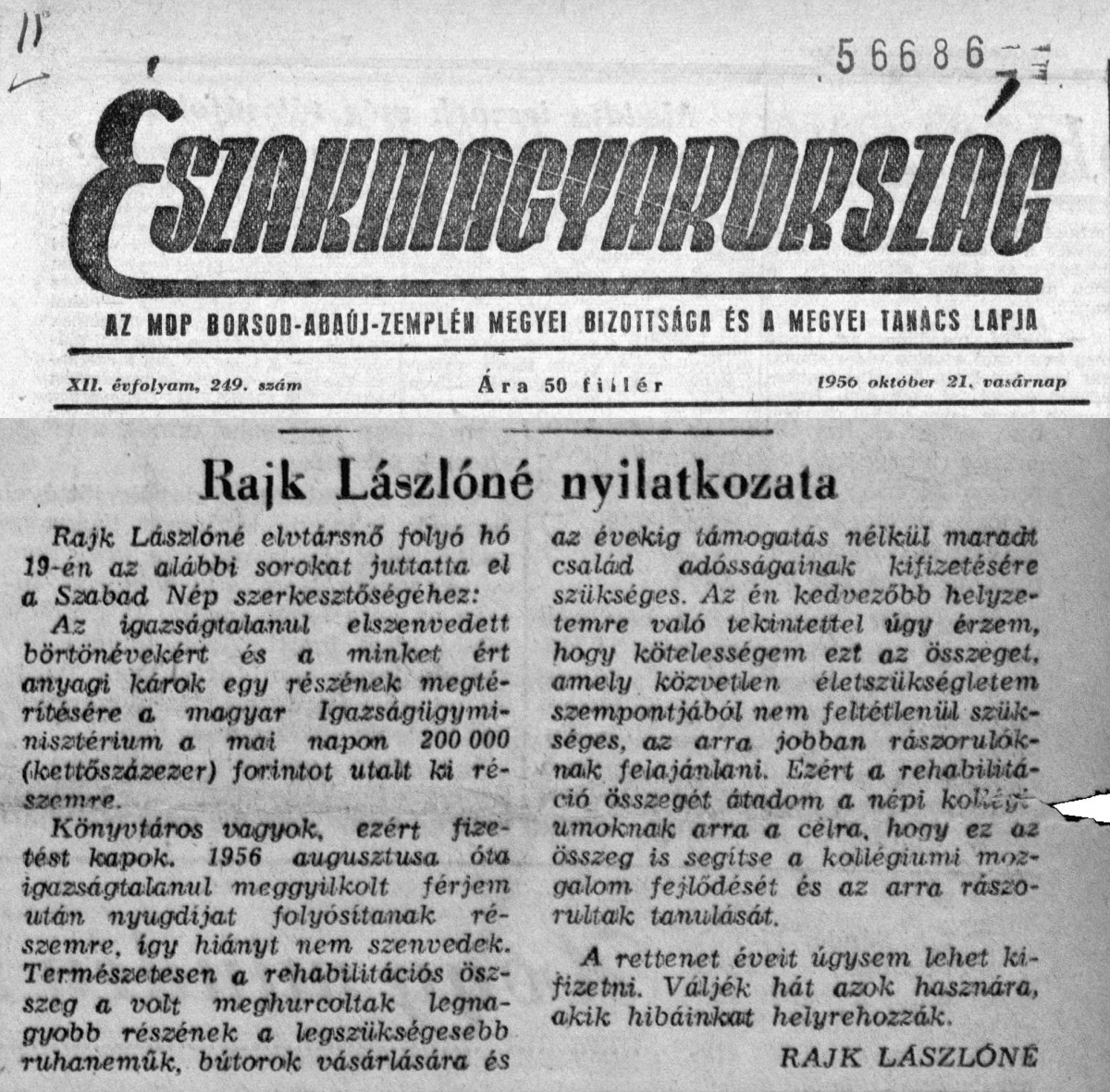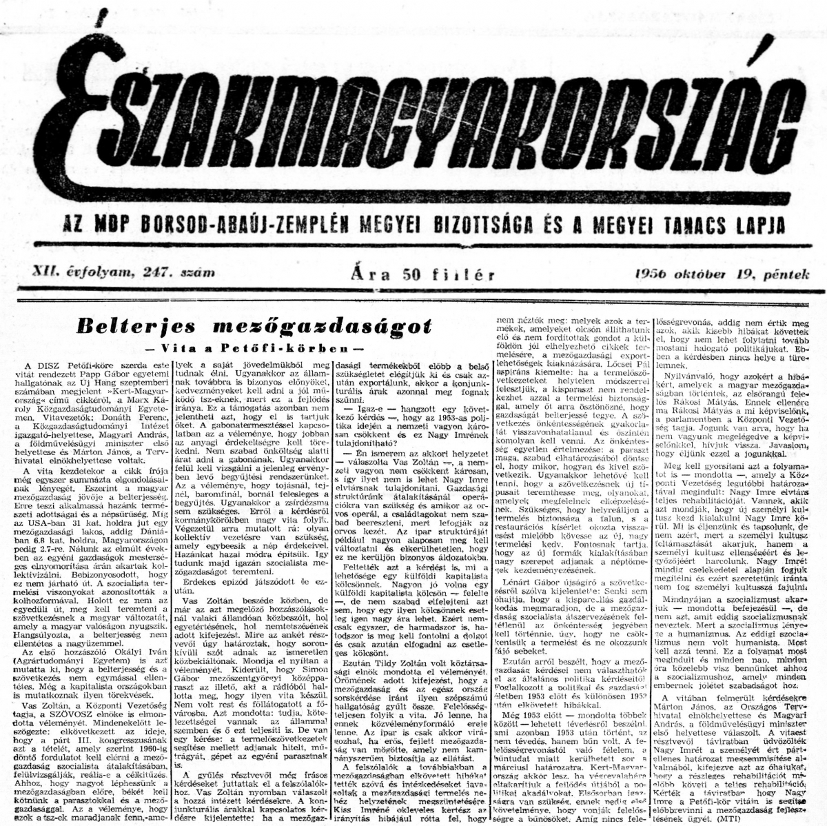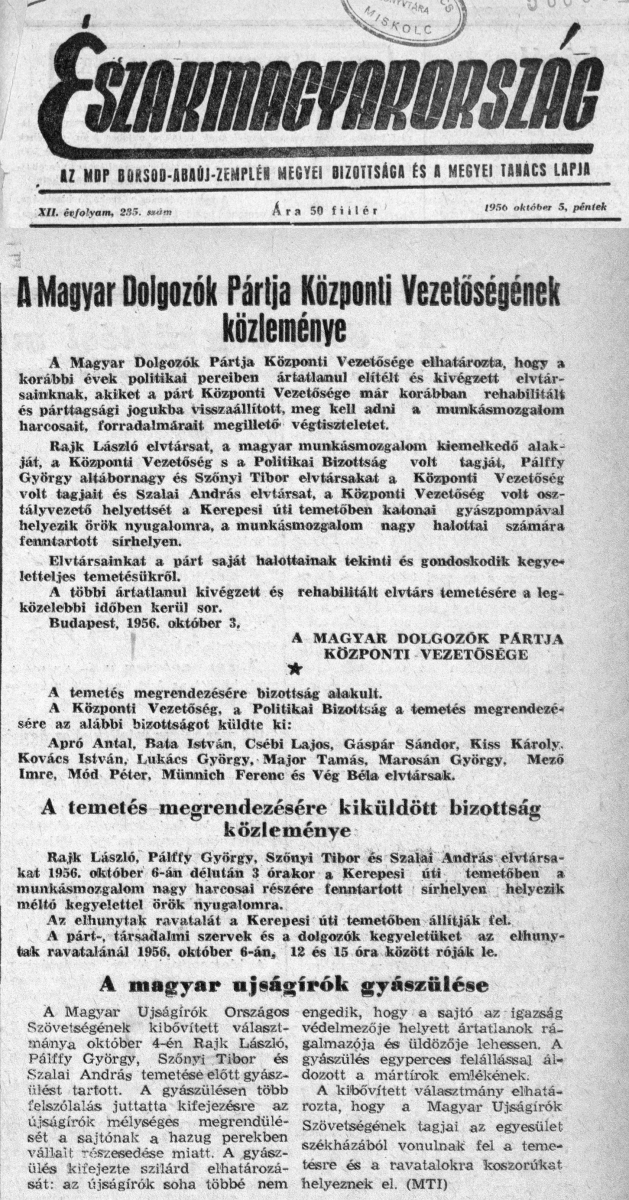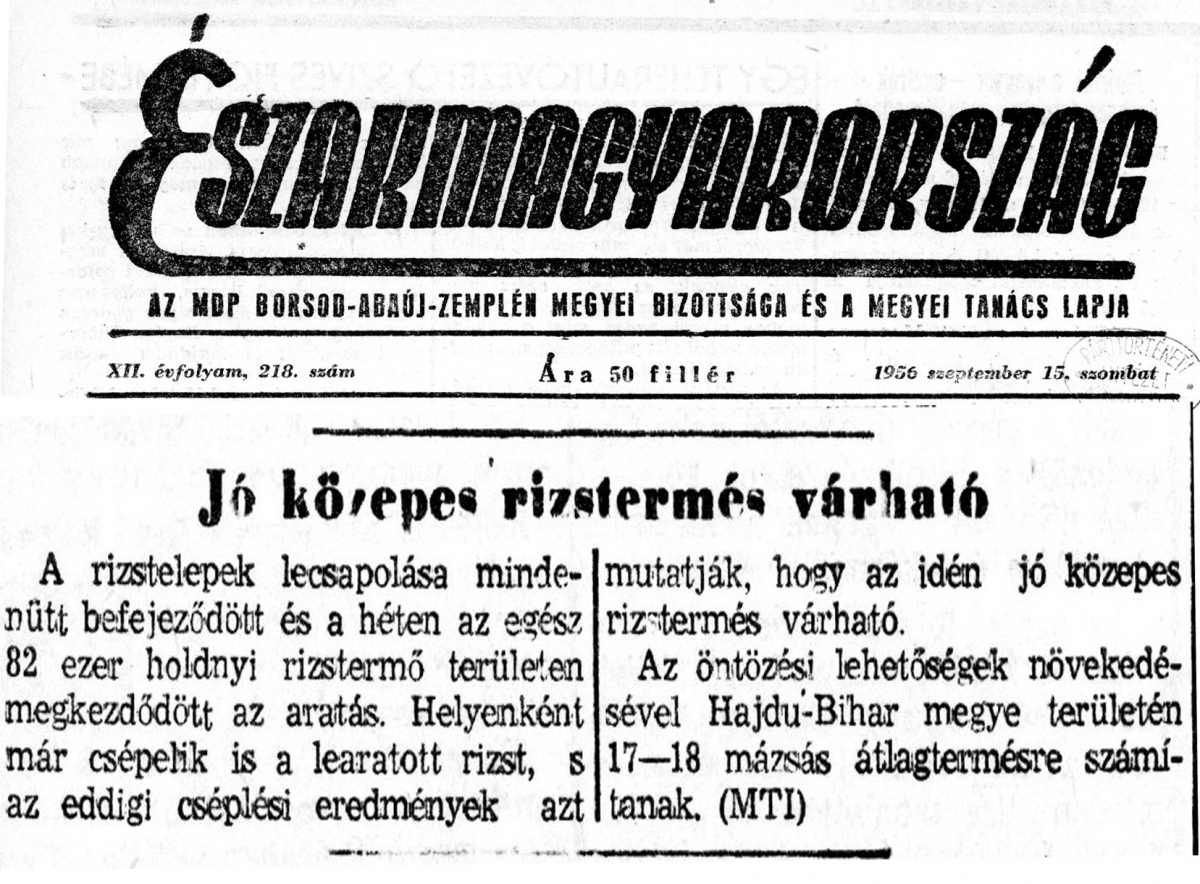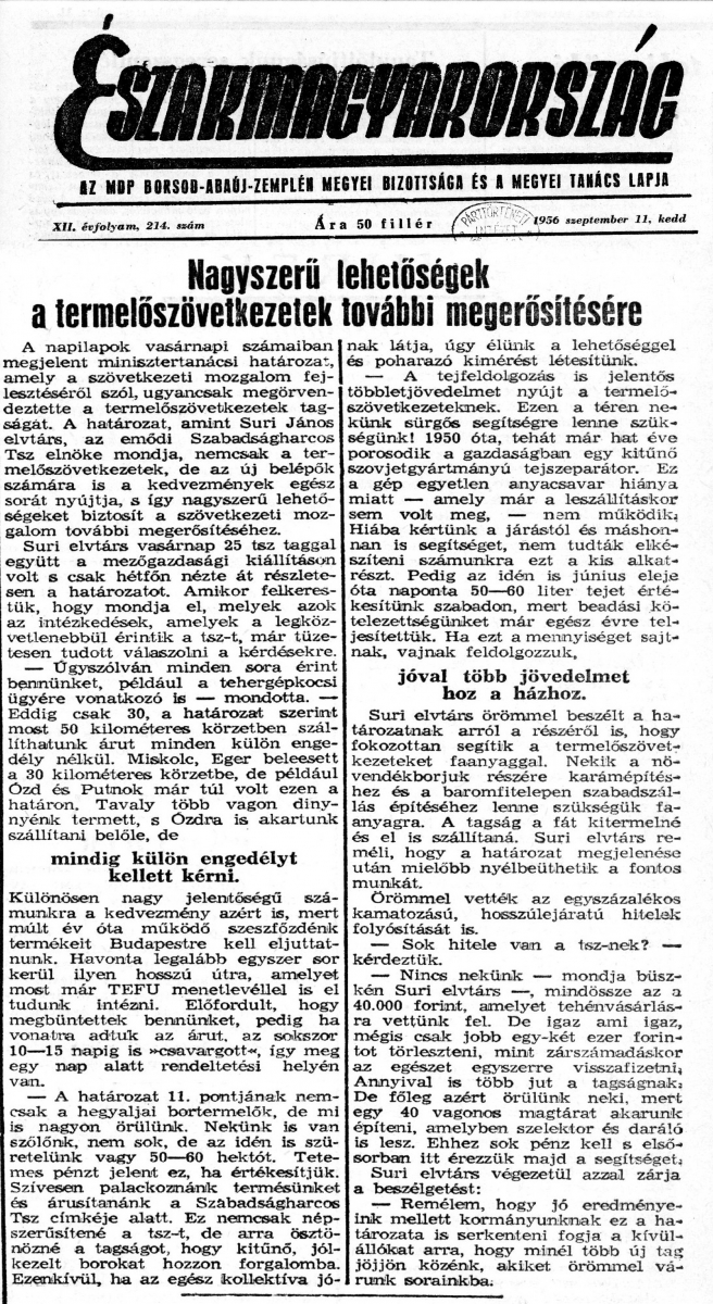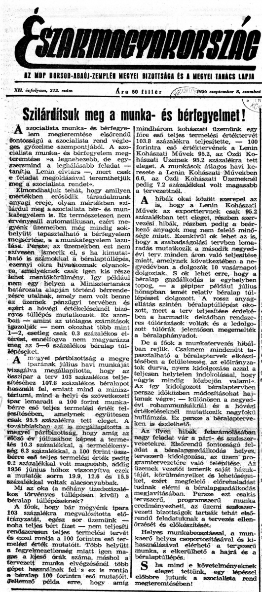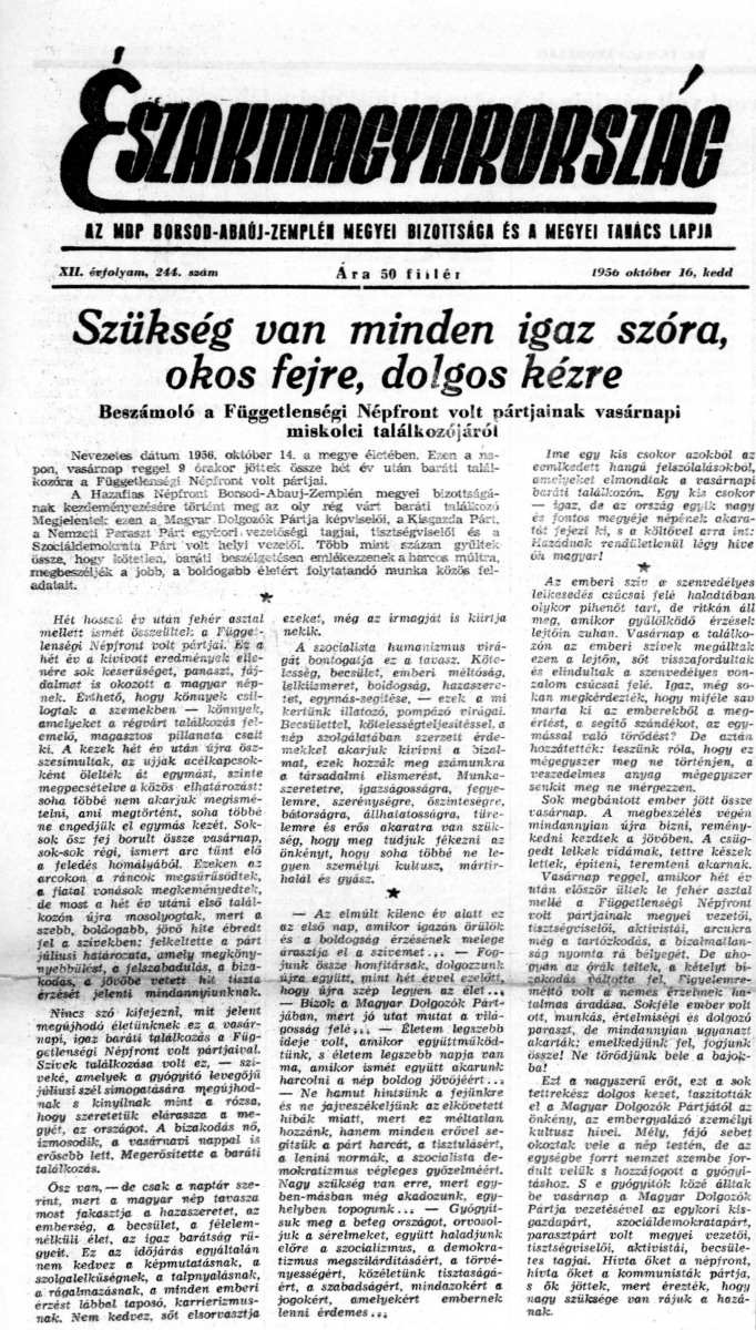 Vajon miről szóltak a hírek közvetlenül a forradalom előtt? Miről írt „az újság”, az Északmagyarország című napilap? Kiválasztottunk 56 hírt 1956-ról, minden napra egyet az október 23-ai forradalmat megelőző időkből – és mindig az adott napon tesszük közzé itt, honlapunkon. (Hétfőn nem jelent meg a lap, az akkori hétfőkre a vasárnapi lapból választottunk.) Kövessék velünk ennek a közel két hónapnak az eseményeit, olvassák velünk napról napra az 1956-os év 56 hírét!