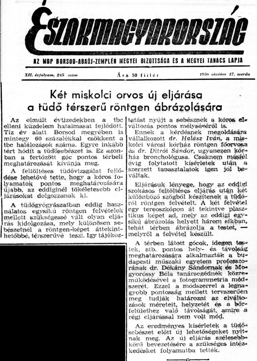 Két miskolci orvos új eljárása a tüdő térszerű röntgen ábrázolására