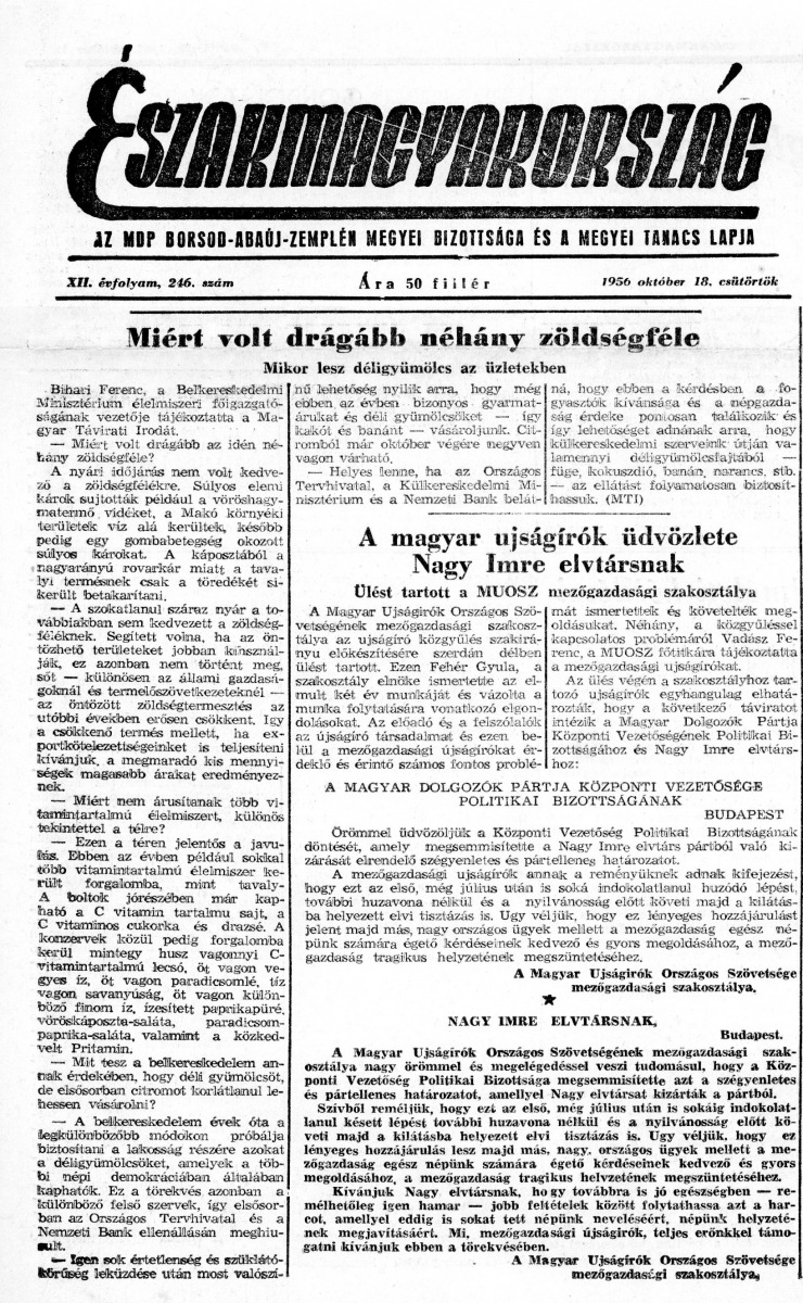 Mikor lesz déligyümölcs az üzletekben – valamint: A magyar újságírók üdvözlete Nagy Imre elvtársnak