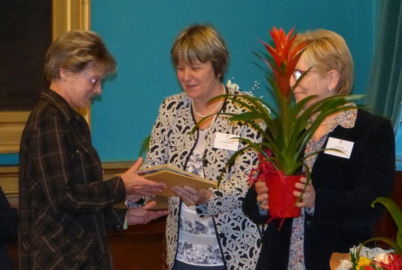 Nagy Istvánné Szabó Éva nyugdíjba vonulása alkalmából emléklapot, munkája elismeréseként Pro Bibliotheca díjat vehetett át dr. Prokai Margittól és az RFMVK megyei igazgatóhelyettesétől, Bokrosné Stramszky Piroskától