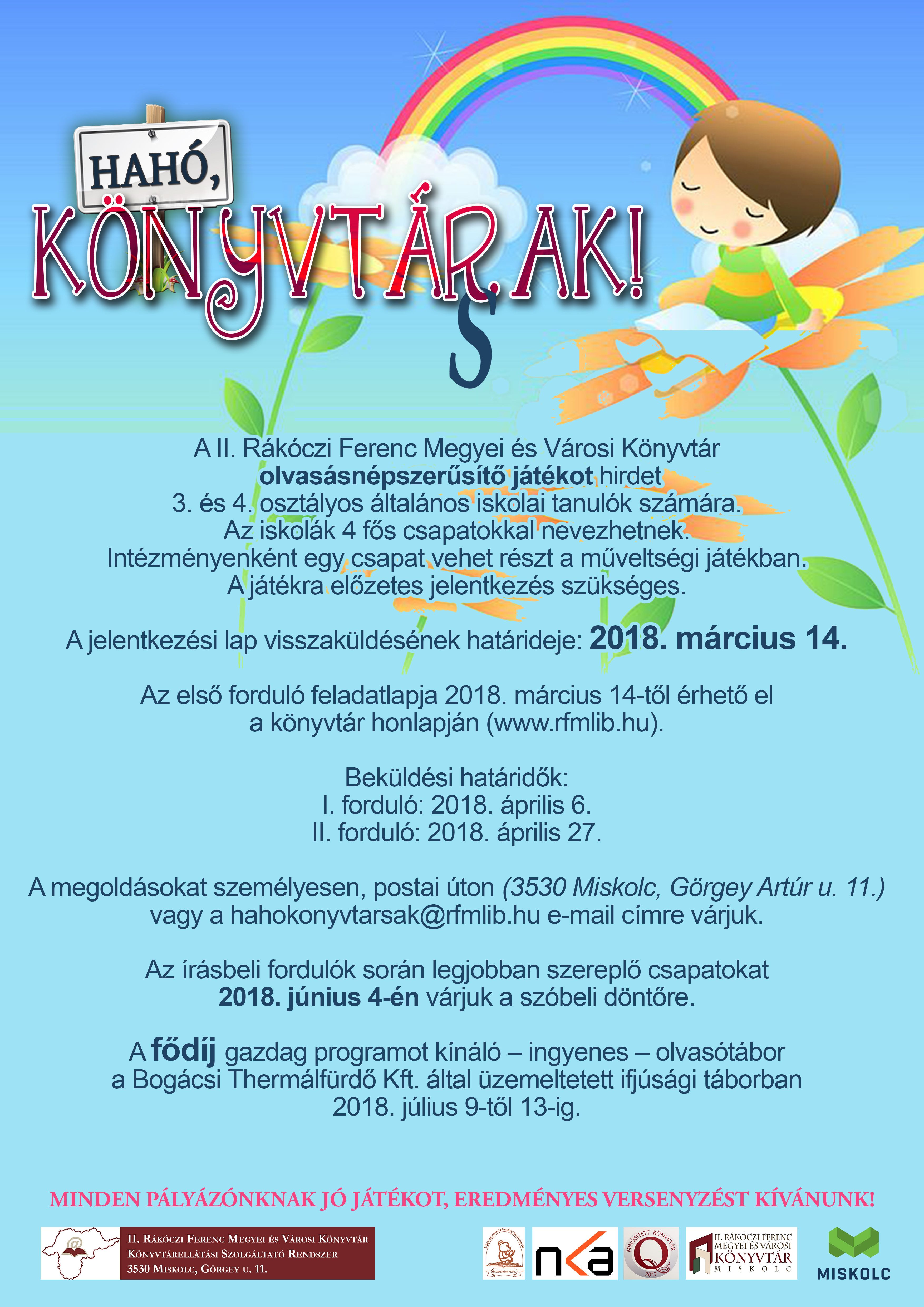 A megoldásokat személyesen, postai úton (3530 Miskolc, Görgey Artúr u. 11.) vagy a hahokonyvtarsak@rfmlib.hu e-mail címre várjuk.
