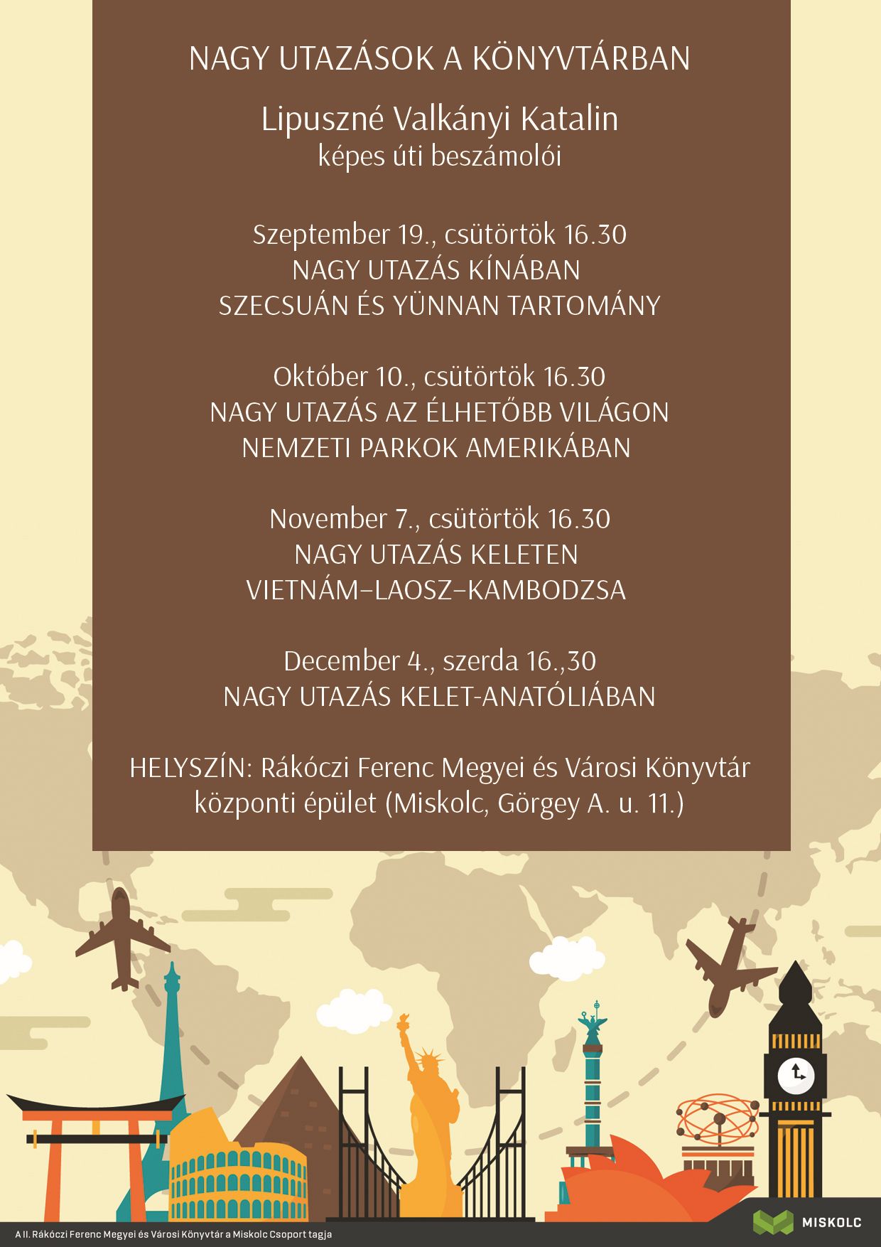 Szeptembertől folytatjuk a Nagy utazások a könyvtárban című sorozatot a II. Rákóczi Ferenc Megyei és Városi Könyvtár központi épületében (Miskolc, Görgey A. u. 11.). Lipuszné Valkányi Katalin képes úti beszámolóinak köszönhetően a keleti kalandozások közben lesz egy különleges amerikai kitekintés is. Szeptemberben két kínai tartományt ismerhetünk meg, októberben pedig néhány nemzeti parkot Amerikában. A részletes program itt olvasható. A belépés díjtalan. Minden érdeklődőt szeretettel várunk. (A fotót Amerikában készítette Lipuszné Valkányi Katalin ny. egyetemi oktató.)