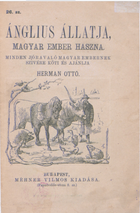 Az Ánglius állatja, magyar ember haszna című kis füzet a magyar és a nyugat-európai állatvédelmet hasonlítja össze. Alcíme szerint: „Minden jóravaló magyar embernek szivére köti és ajánlja Herman Ottó”.  Az írás szerint a nyugati országokban: „Van kemény törvénye, mely sújtja azt az embert, a ki az állattal rosszul bánik, avval kegyetlenkedik, – mindegy, akár béres, akár úr legyen ő, bizony rámérik az ezer forint birságot, s a tetejébe még rázárják a tömlöcz ajtaját is !”. Magyarországon viszont: „sok gazda sem jobb ám a Deákné vásznánál: mindég többet kiván a jószágtól, mint a mennyi erejétől telik, kétannyit is utána rak s ha nem birja, üti, veri, elkinozza. Azért gebe a lova, kecske az igás ökre, csenevész mindene — nincsen ára, nincsen haszna.”