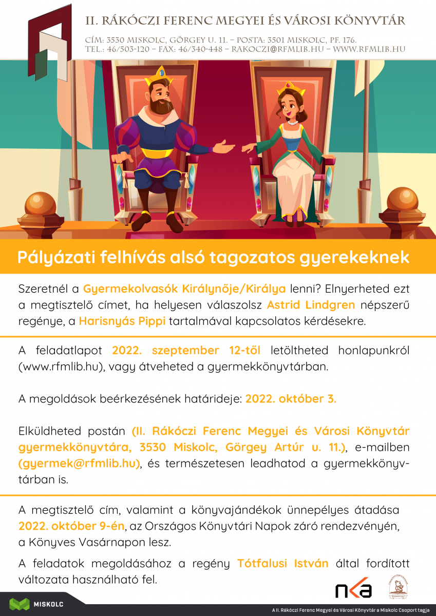 A feladatlapot 2022. szeptember 12-től letöltheted honlapunkról (www.rfmlib.hu), vagy átveheted a gyermekkönyvtárban.