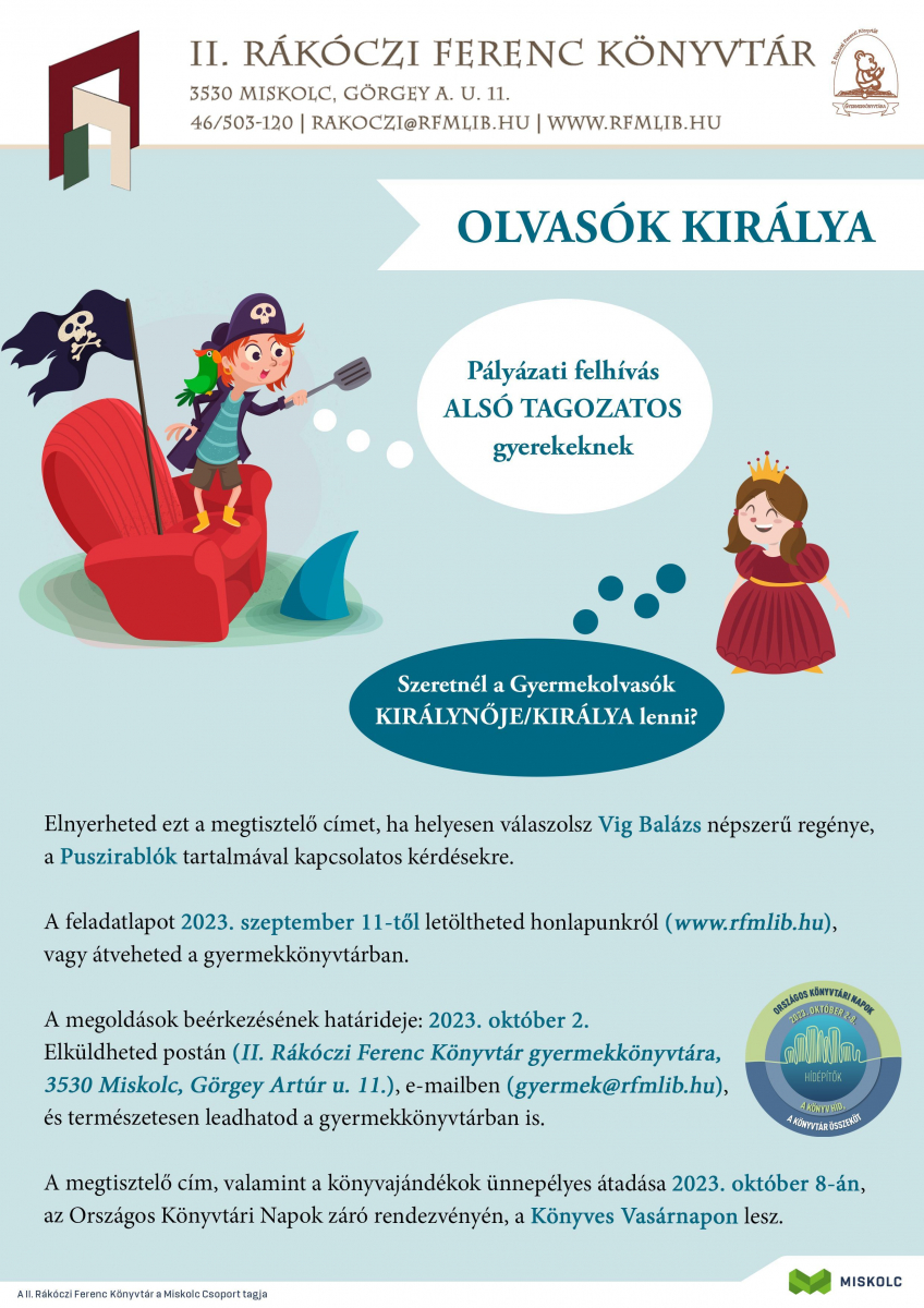 A feladatlapot 2023. szeptember 11-től letöltheted honlapunkról (www.rfmlib.hu), vagy átveheted a gyermekkönyvtárban.