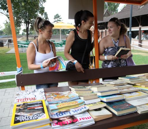 Elsősorban könnyed olvasmányokkal, mesékkel, kalandregényekkel, népszerű magazinokkal, képes kiadványokkal várjuk olvasóinkat strandkönyvtárunkban Miskolcon a Selyemréti Standon. A II. Rákóczi Ferenc Megyei és Városi Könyvtár standja a strand oldalsó bejáratánál található. A közel 200 kiadványból bárki kedvére válogathat hétköznaponként délelőtt 9-től délután 3 óráig. Ha pedig vége a standszezonnak – reméljük –, Miskolc könyvtáraikban is találkozunk a strandon (is) olvasókkal. A fotót Mocsári László, a minap.hu munkatársa készítette.